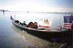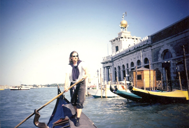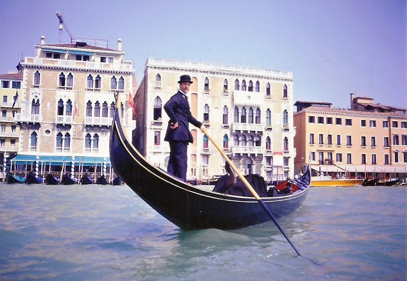 Angelino’s rowing teacher and close friend, Roberto Vianello, in a gondola fashioned after 1800 design.
