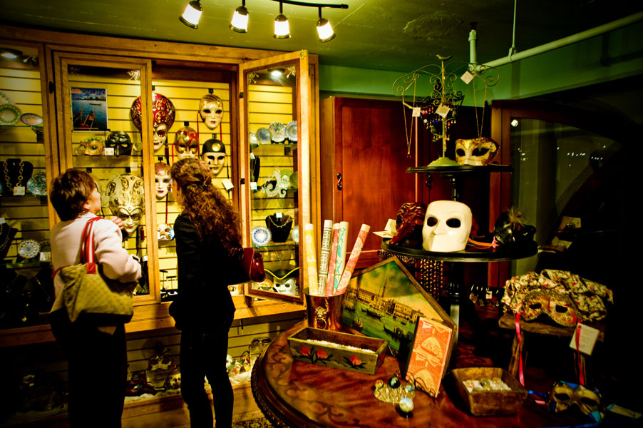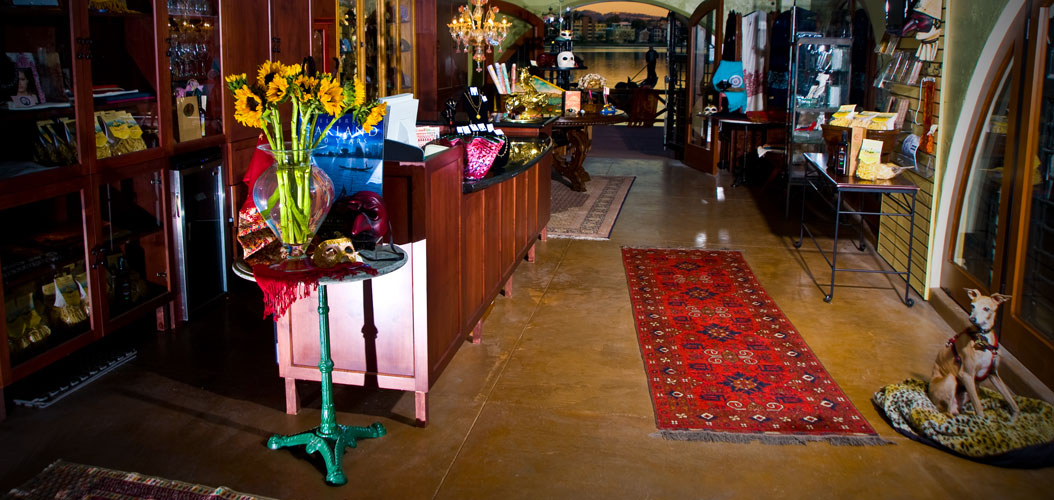 Our specialty on-site boutique features handcrafted and one- of-a kind artisan wares such as fine jewelry, glass sculptures, embroidered cashmere and Pashmina shawls from Pakistan, Italian food products, and Venetian imports, including mille fiori, masks, and chandeliers. We also are the exclusive seller of the new short film about Leonardo Di Vinci DVD by local animator Jim Capobianco.